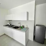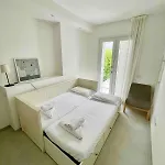Ορισμένα διαμερίσματα περιλαμβάνουν επίσης ψυγείο και σκεύη κουζίνας.